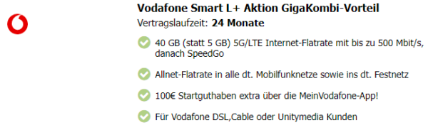 Wenn ihr euch für diesen Deal entscheiden solltet, dann nutzt auf jeden Fall nach Erhalt der SIM die MeinVodafone-App auf dem Smartphone – denn dort bekommt ihr nicht nur die 39,99€ Anschlussgebühren erstattet darüber, sondern auch noch ein 100€ Startguthaben obendrauf über die App! 🙂