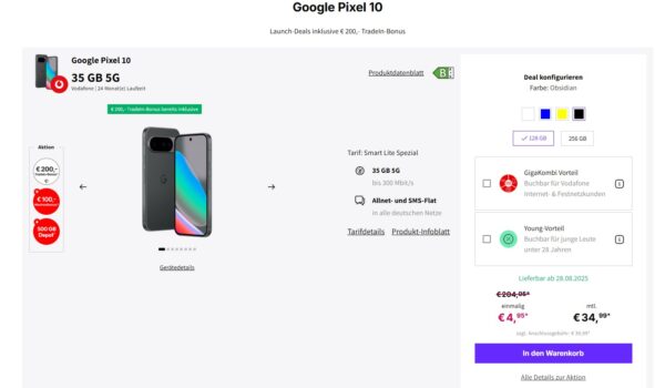 Noch weitere Angebote mit dem Pixel 10 findet ihr hier.