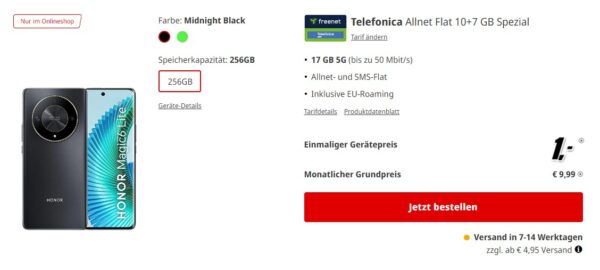 *WEEKEND-DEAL* Honor Magic 6 Lite 5G + 17GB LTE + Alles-Flat im Telefonica-Netz für 9,99€/Monat