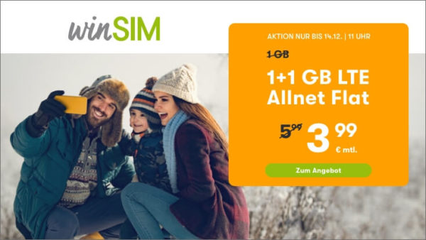 WinSIM: 2 GB LTE Allnet-Flat für 3,99€/Monat (auch ohne Vertragslaufzeit!)