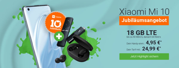 Fazit: Hier bekommt ihr das Xiaomi Mi 10 inkl. Earbuds & TV Stick mit 18 GB LTE für effektiv nur 3,41€/Monat