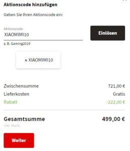 Nutzt dafür einfach den Gutschein XIAOMIMI10 im Warenkorb.