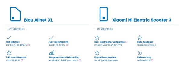 Mal ein etwas anderes Tarif-Bundle, bei Blau bekommt ihr den Xiaomi Mi Electric Scooter 3 + 10GB LTE Allnet-Flat im o2-Netz für 29,99€/Monat