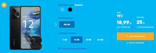 Bei Blau bekommt ihr gerade das Xiaomi Redmi Note 12 Pro + Redmi Buds 4 Lite + 12GB LTE + Alles-Flat im o2-Netz für 18,99€/Monat