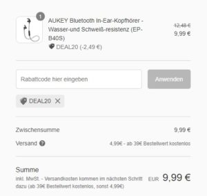 AUKEY Bluetooth In-Ear-Kopfhörer für 14,98€