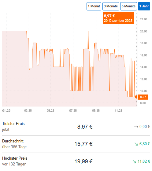 Und dabei handelt es sich um den aktuellen Bestpreis der letzten 12 Monate!