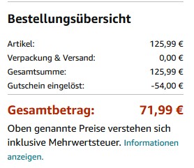 für effektiv 71,99€ (Vergleichspreis: ~160€) Ersparnis ~88€