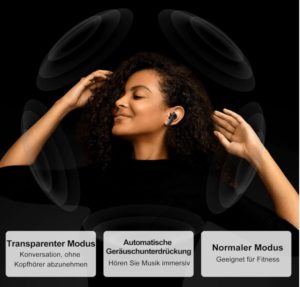 - Noise-Cancelling-Kopfhörer mit drei Musikmodi, um Ihren Bedürfnissen gerecht zu werden. Bluetooth Kopfhörer mit bis zu 2x mehr aktiver Geräuschunterdrückung für deutlich weniger Lärm, wenn Sie sich konzentrieren möchten. Der Transparenzmodus ermöglicht es Ihnen, die Welt um Sie herum zu hören. Im Normalmodus können Sie etwas Umgebungsgeräusche hören, was für den Outdoor-Fitnessgebrauch geeignet ist. Adaptive Audio mischt nahtlos aktive Geräuschunterdrückung und Transparenzmodus für das beste Hörerlebnis in jeder Umgebung.