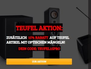 Bei DealClub bekommt ihr gerade 15% Extra-Rabatt auf alle Teufel Artikel „mit optischen Mängeln“