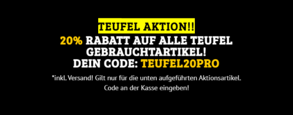 Denn dort bekommt ihr nun 20% Rabatt auf gebrauchte Teufel-Produkte (vom Hersteller refurbished & verifiziert) im Online-Shop.