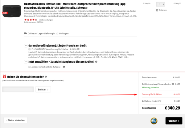 Der Preis wird erst angepasst, nachdem ihr den Lautsprecher in den Warenkorb gelegt habt.