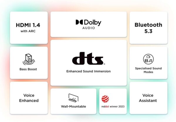 - Reddot-Gewinner 2023: Das technische und funktionell-versierte Design verhalf der TCL Soundbar den Platz als Reddot-Gewinner 2023. Atemberaubende Klangeffekte und visuelle Effekte werden geboten, um die Soundunterhaltung zu maximieren.