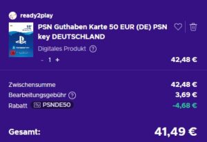 50€ PSN Guthaben (PlayStation Network) für 41,49€