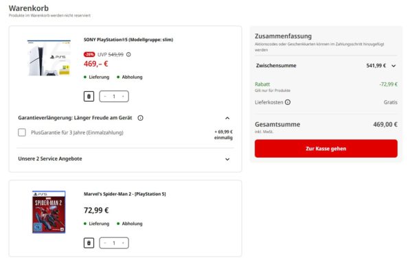 Hierbei könnte es sich um einen Preis- bzw. Bundle-Fehler handeln bei Interesse also schnell sein! Bei MediaMarkt alternativ auch bei Saturn bekommt ihr die Sony Playstation 5 Slim inkl. Laufwerk + Spiderman 2 für 469€ (Vergleichspreis ~566€) Ersparnis ~97€