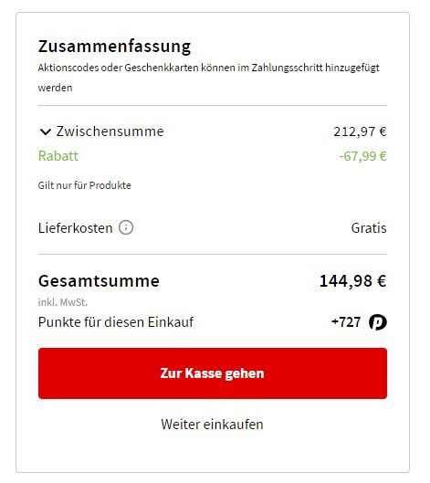 Die Versandkosten entfallen ab 59€ Bestellwert (außer 18er Artikel), eine eventuelle Retoure ist kostenlos