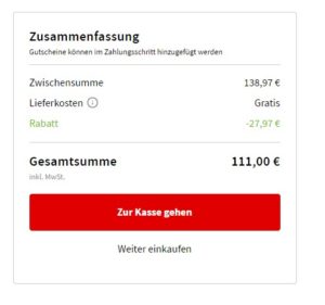 - Der Preis im Warenkorb wird automatisch auf 111€ angepasst 😉