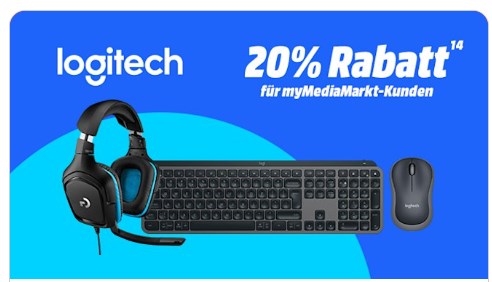 Bei MediaMarkt und Saturn bekommt ihr jeweils als myMediaMarkt oder mySaturn Kunde, 20% Rabatt auf Logitech Produkte