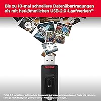 - Mit dem SanDisk Ultra USB 3.0 Flash-Laufwerk haben Sie 10-mal schnelleren Zugriff auf Ihre Dateien, als bei USB 2.0 Flash-Laufwerken.