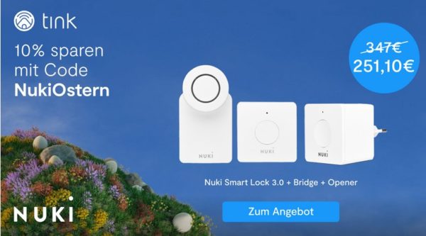- Nuki Smart Lock 3.0 + Bridge + Opener – 251,10€ statt 347,00€
