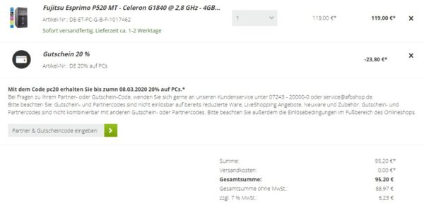 *TIPP* AfB-Shop: 20% Extra-Rabatt auf ausgewählte PC´s