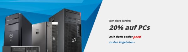 Im Onlineshop von AfB, einem Anbieter von wiederaufbereiteten und generalüberholten (refurbished) Notebooks, Tablets, PC’s & mehr, erhaltet ihr diese Woche 20% Extra-Rabatt auf ausgewählte PC´s.