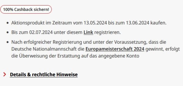 Dank der Acer Cashback-Aktion gibt es sogar 100% Geld zurück, wenn Deutschland Fußball Europameister 2024 wird. 🙂