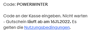 Um auch auf den Preis zu kommen, müsst ihr den Gutschein-Code POWERWINTER verwenden.