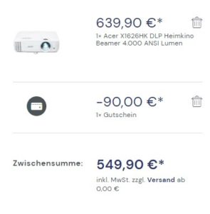Euer Bild am TV ist euch mittlerweile zu kleine? Wie wäre es denn dann mal mit einem Beamer? Bei Office-Partner bekommt ihr den Acer X1626HK DLP Heimkino Beamer 4.000 ANSI Lumen (WUXGA, 16:10, 8.3ms, MHL, HDMI, USB, 24/7, 3D-fähig) für 549,90€ (Vergleichspreis ~639€) Ersparnis ~89€
