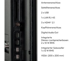 - Mehr als nur Fernsehen: Dank der Smart-TV-Funktion nutzt Du Streamingdienste, Spiele und Apps bequem vom Sofa aus. Vom aktuellen Wetter über Mediatheken bis hin zu News genießt Du die ganze Welt des Internets am großen TV-Bildschirm.