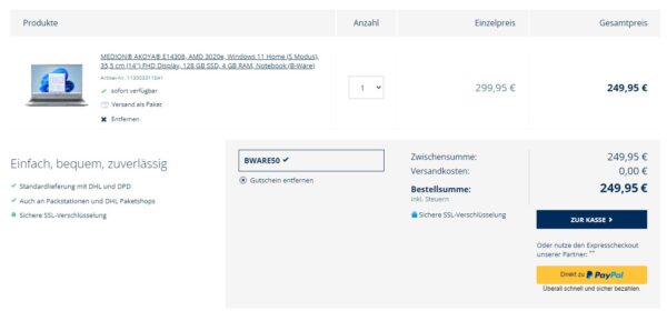 Nutzt einfach den 10€ Newsletter-Gutschein im Warenkorb und schon kommt ihr auf den genannten Preis.