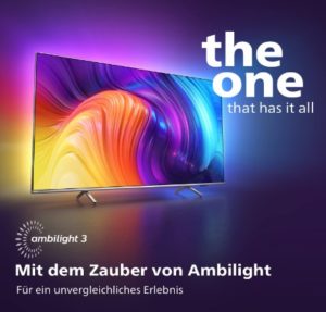 Philips 50PUS8507/12 126 cm (50″) Fernseher (4K UHD, HDR10+, 60 Hz, Dolby Vision & Atmos, 3-seitiges Ambilight, Triple Tuner für 599€