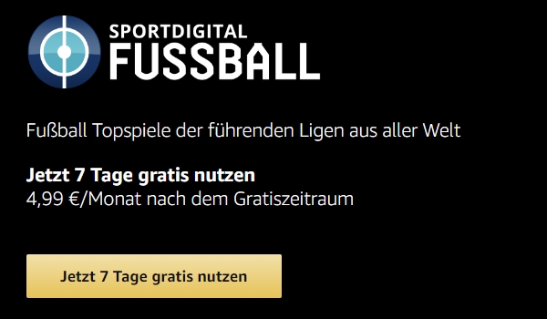 Fußballfans aufgepasst! ⚽ Bei Prime Video erhaltet ihr nun zum Start des neuen Prime Video Channel „SPORTDIGITAL FUSSBALL“ die Möglichkeit das Angebot ganze 7 Tage lang absolut GRATIS zu testen!