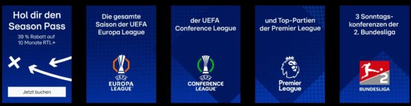 Hier erhaltet ihr neben den regulären Inhalten nun außerdem die UEFA Europa League und der UEFA Conference League sowie die Spiele der aktuellen NFL Saison!