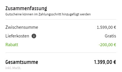 Auf den Preis kommt ihr durch einen Direktabzug.