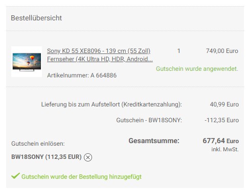 Um auf den Preis zu kommen nutzt bitte den Gutschein BW18SONY