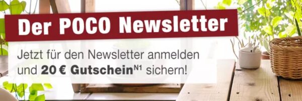 Abonniert dazu einfach den POCO-Newsletter Gutschein um 20€ (MBW 120€) zu sparen und geht damit einfach zur Kasse.