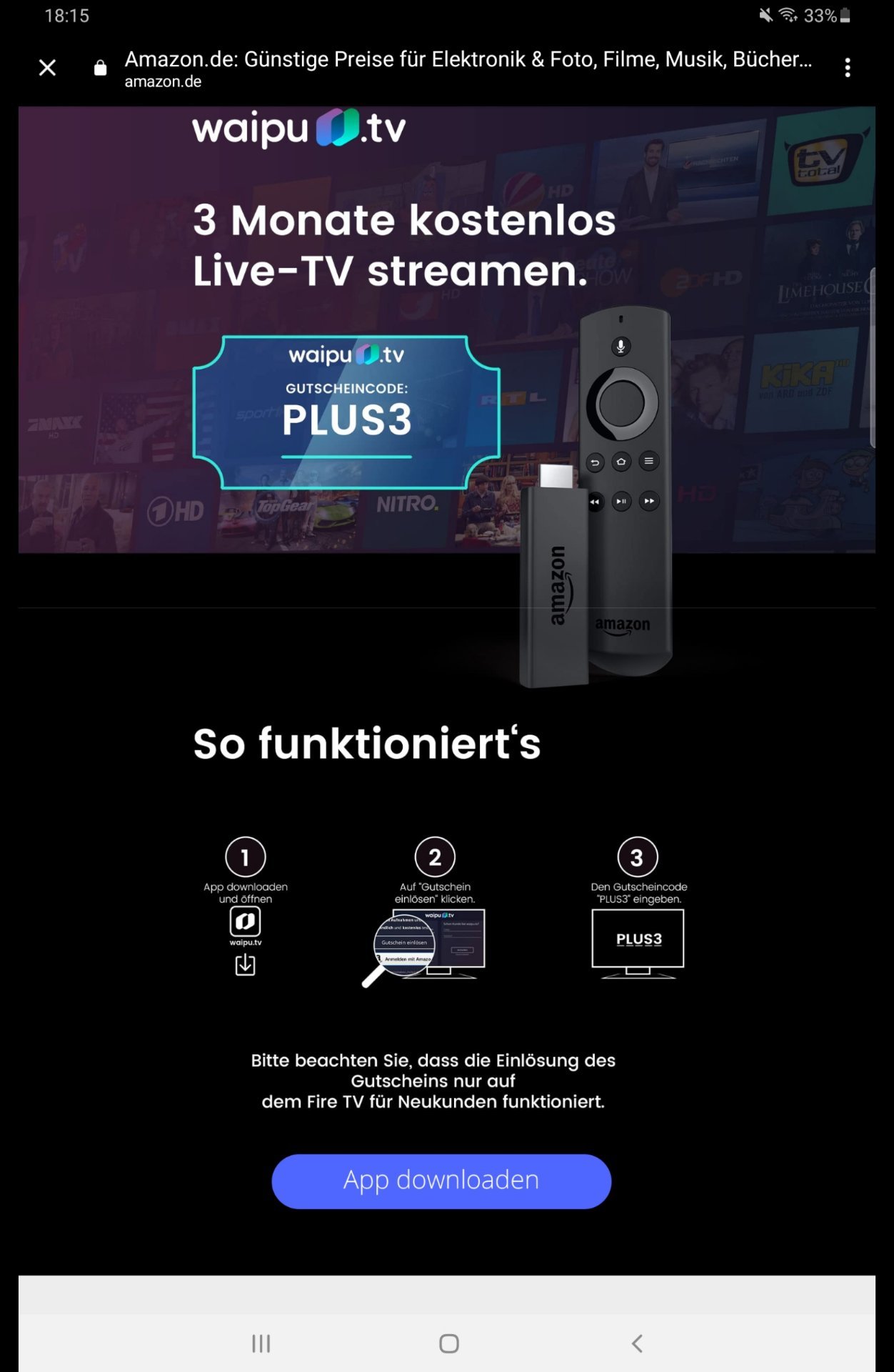 Wer den Fire 4 K – Stick erstmal erhalten bzw. bestellt hat hat und Waipu noch nicht genutzt hat, hier ist Angebot um es Kostenlos zu Testen für 3 Monate. Einzig Sat – 1 Gruppe und Pro – 7 Gruppe lassen sich nicht Aufnehmen (100 Stunden Speicher). Hab im Amazon Account Verlängerung abgemeldet und bin nach 3 Monate raus, wollen ja dann 12,99 pro Monate. Dann werd ich schauen wie Joyn oder andere Anbieter sind. 😎