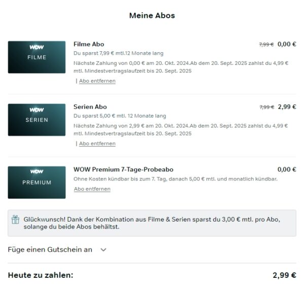 Ein weiteres, attraktives Angebot von WOW. Das Jahresabo WOW Filme & Serien erhaltet ihr nun nur für kurze Zeit für 2,99€/Monat. 🙂