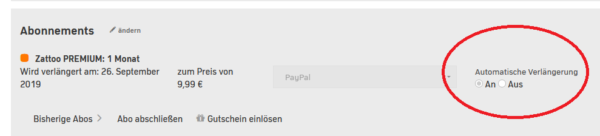 wir bedauern, dass du die automatische Verlängerung deaktiviert hast. Dein Abo läuft noch bis zum 27.09.2019 17:18 CEST und wird danach nicht mehr zur Verfügung stehen.