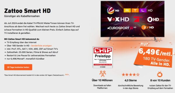 - Zattoo Smart HD Premium / Ultimate: Über 220 TV-Sender, viele davon in HD (Inkl. Pro7, RTL & Co.)