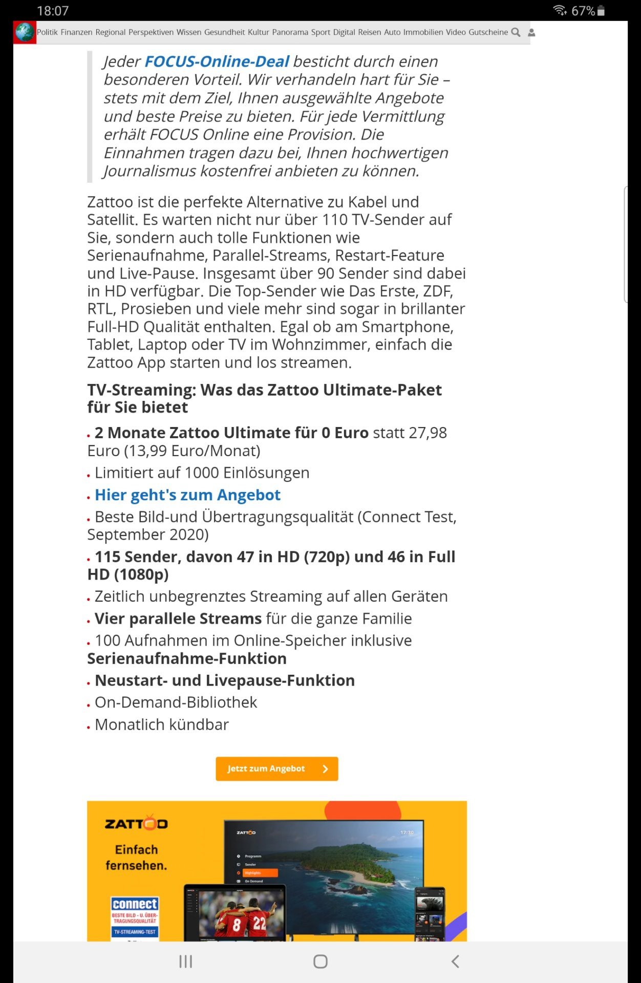 Schappi (Gast) 17.01.2021, 17:51 #Bei Focus online bekommt man gerade 2 Monate gratis bei Anmeldung. Jetzt muß ich bloß noch sehen ob Waipu.tv oder Zattoo besser ist. 🤔