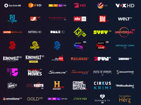 - Über 160 Sender (130+ HD), inkl. 40+ Pay-TV-Sender