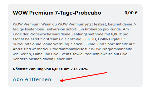 - Hinweis: WOW Premium gibt es 7 Tage ONTOP gratis. Ansonsten 5€/Monat, kann und sollte bei Bedarf gleich gekündigt werden oder entfernt werden beim Bestellen (!)