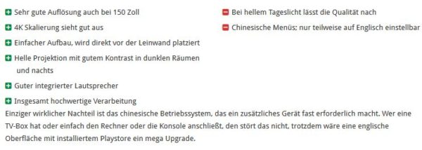 Vor einigen Wochen hat der Beamer sogar noch über 1.600€ gekostet. Insgesamt kann der smarte Kurzdistanzbeamer bei verschiedenen Testberichten (z.B. China Gadgets) überzeugen. Gerade auch auf das Preis-/Leistungsverhältnis bezogen, bekommt man bei diesem Projektor Gutes geboten.