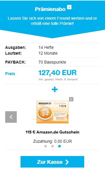 - 14 Ausgaben für 127,40€ + 115€ Amazon.de Gutschein*