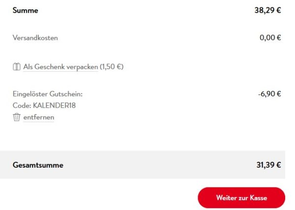 Der Gutschein KALENDER18 gilt bis einschließlich 18.10.2023. Ihr könnt den Gutschein ausschließlich online einlösen unter http://www.hugendubel.de. Keine Bestellung zur Abholung mit Zahlung in der Filiale möglich. Der Gutschein ist nur gültig für Kalender, die nicht der gesetzlichen Preisbindung unterliegen und nur, solange der Vorrat reicht. Nicht einlösbar auf Spielwarenadventskalender. Der Gutschein ist nicht mit anderen Gutscheinen und Geschenkkarten kombinierbar. Eine Barauszahlung ist nicht möglich. Ein Weiterverkauf und der Handel des Gutscheincodes sind nicht gestattet.