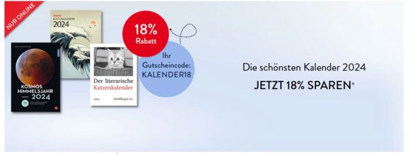 Bei Hugendubel gibt es 18% Rabatt auf Kalender für das Jahr 2024.