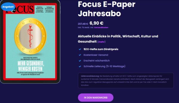 - Focus E-Paper Jahresabo für 6,90€ – Kündigung nötig (geht per E-Mail)