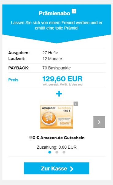 - 27 Ausgaben für 129,60€ + 110€ Amazon.de Gutschein*