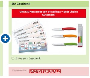 - Wert des Messer-Set + 30€ BestChoice-Gutschein ~43€